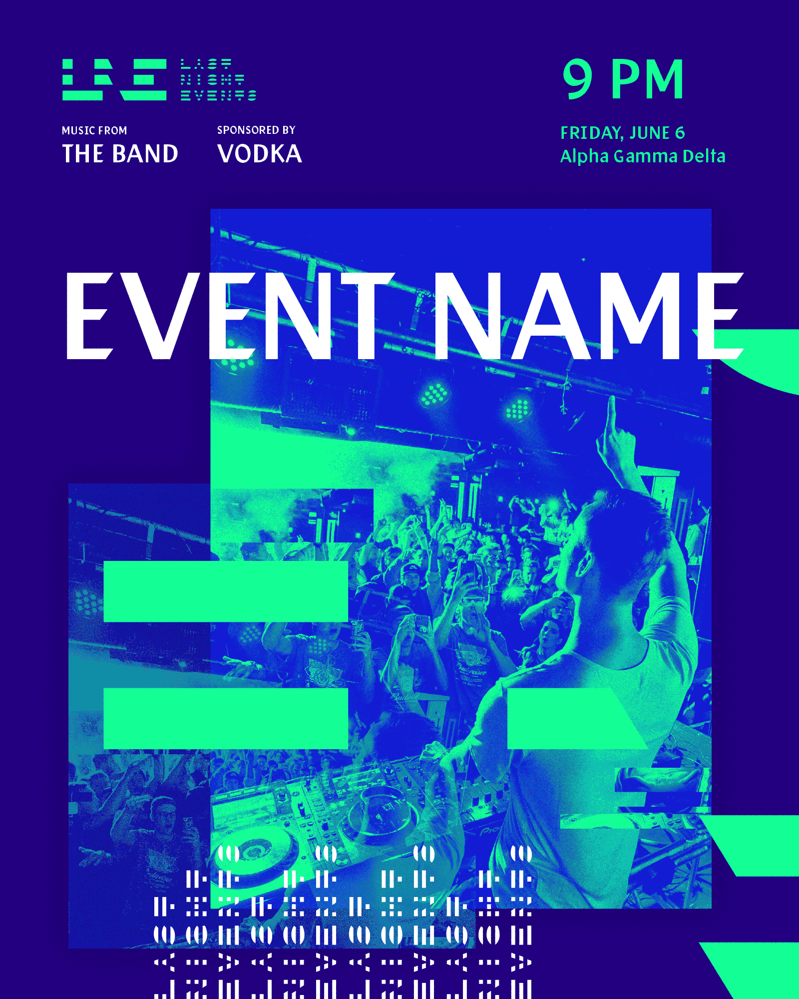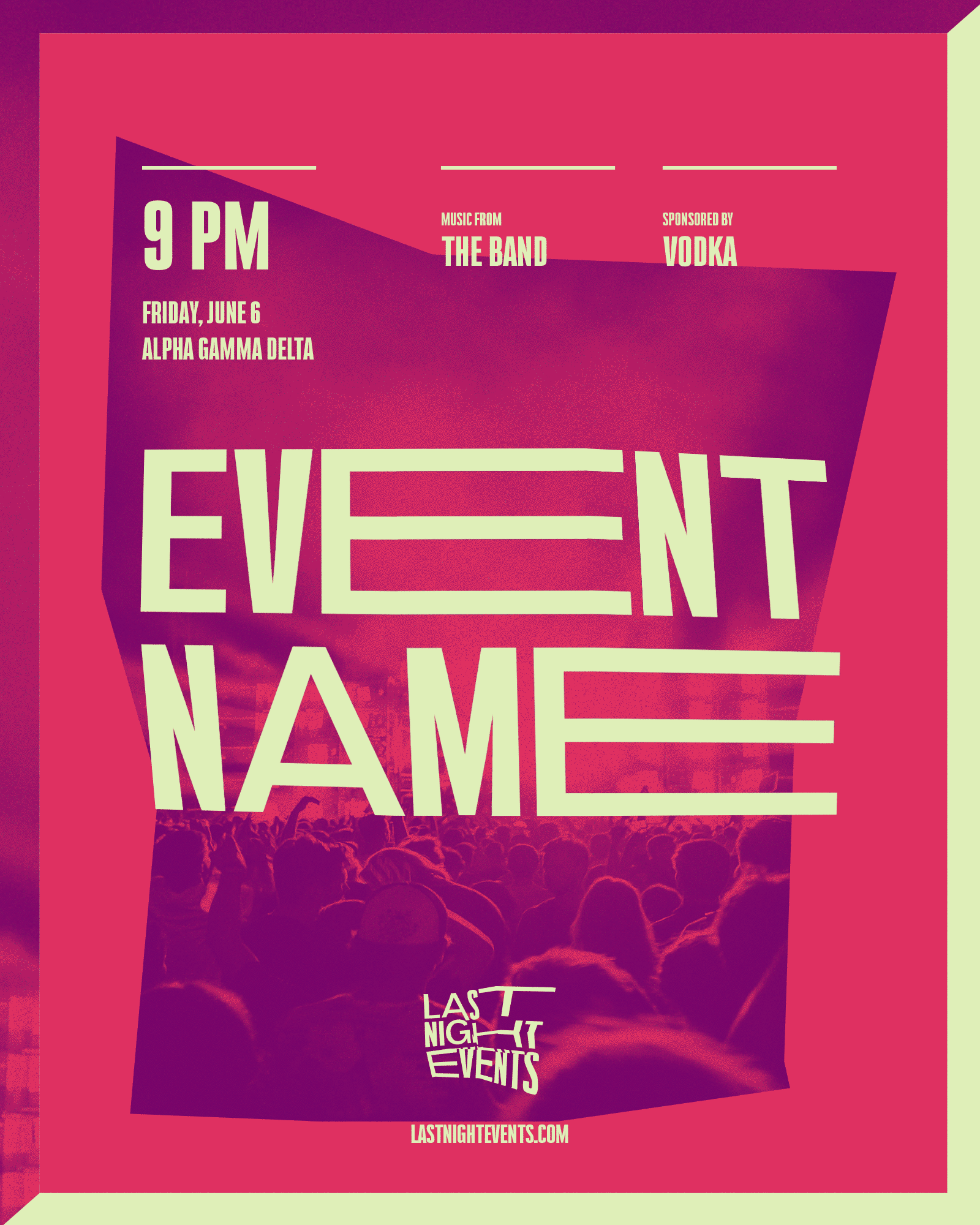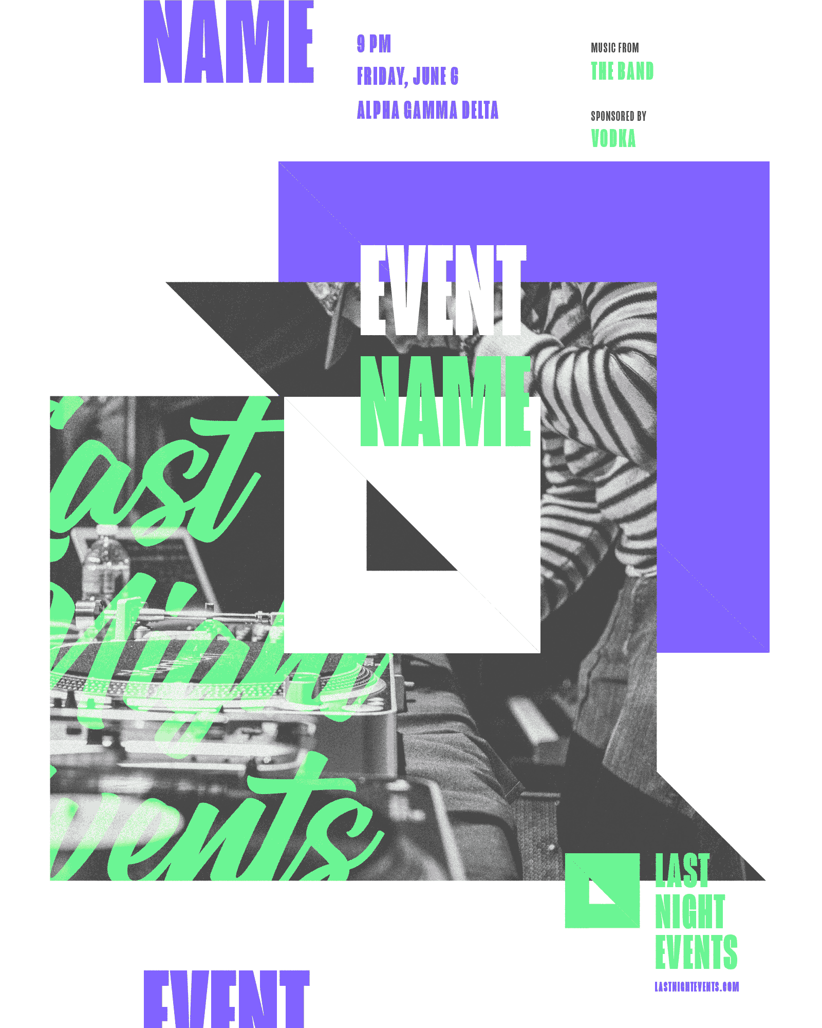These were a series of poster templates that we designed to be animated for online use. The names of the bands, times and place could all be filled in and quickly executed.