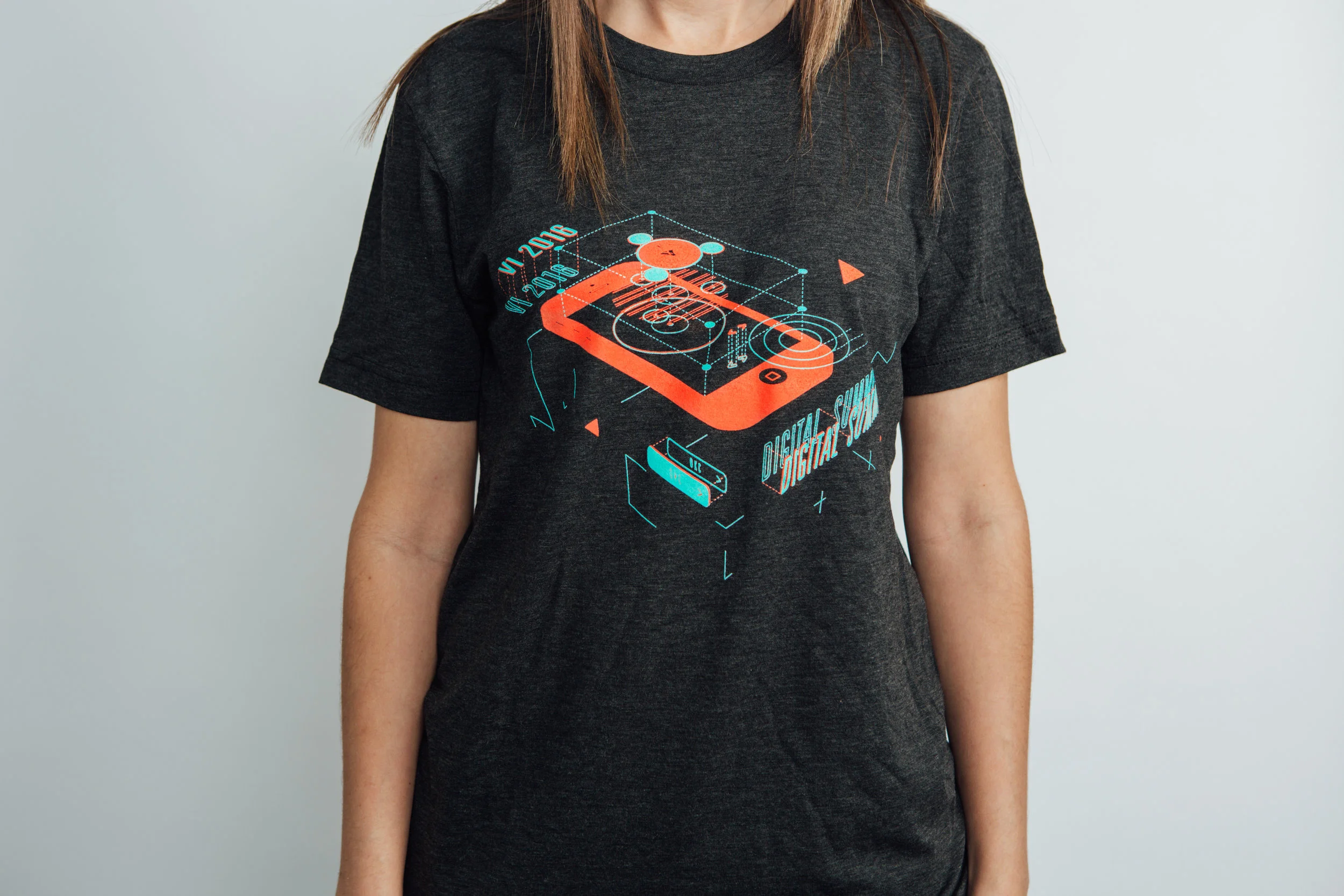 The Digital Summit is an annual conference hosted by VI Marketing and Branding in Oklahoma City, OK for their employees and clients. Each conference has a theme and for 2016 it was how to utilize a "rock" of content where pieces are created for multiple formats from a single project. The iPhone being the metaphor for all the components of a campaign being viewed on our devices. An isometric illustration was created with digital patterns exploding from the screen representing all the pieces of the rocks being used across disciplines. For the 2016 Digital Summit we created a t-shirt for all the participants to wear after the event.